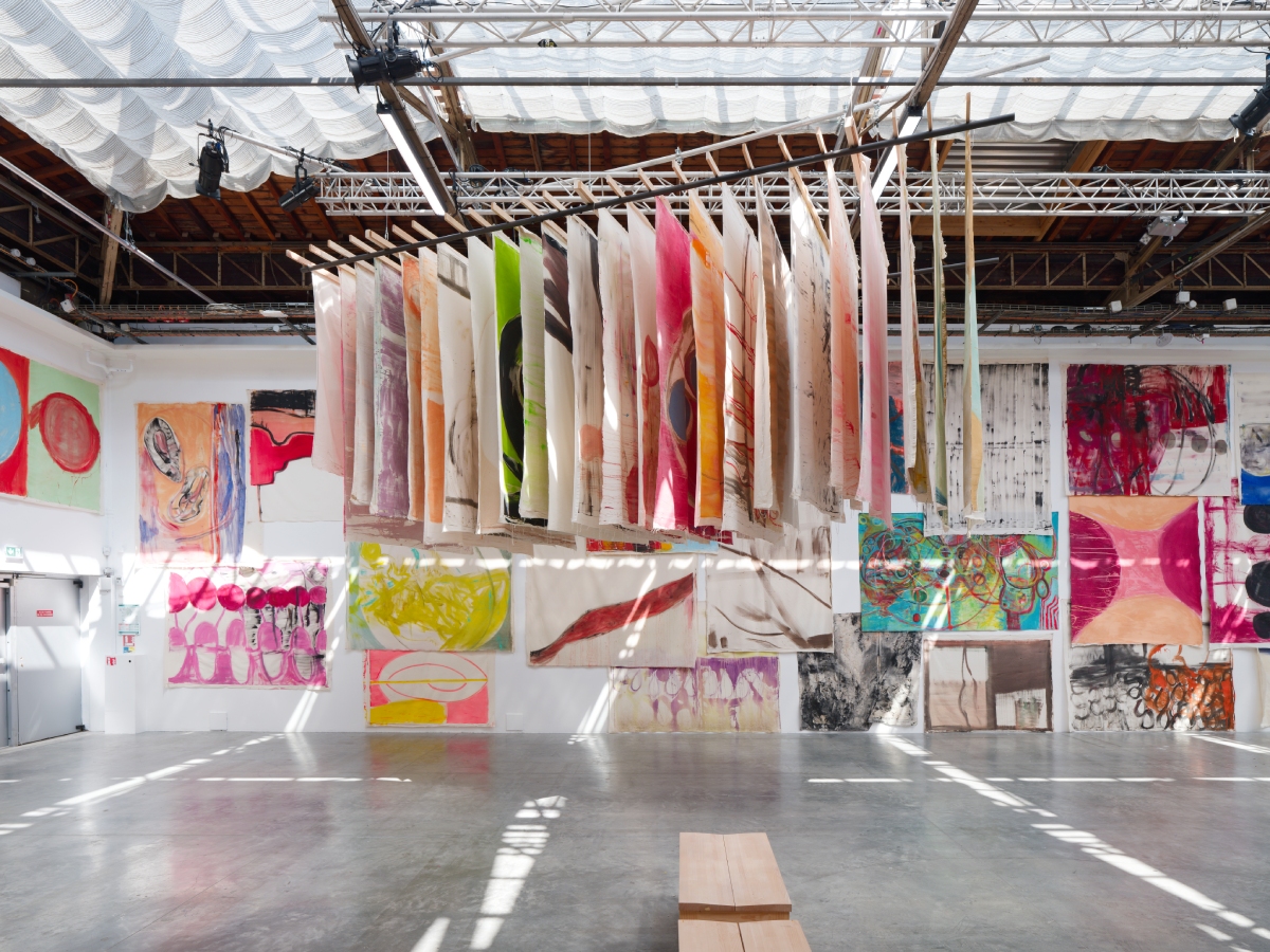 Vista de la exposición, Vivian Suter, «Disco», Palais de Tokyo (París), 12.06–07.09.2025 Copyright Vivian Suter Cortesía de Karma International, Zúrich; Gladstone, Nueva York / Bruselas / Seúl; Gaga, Ciudad de México; Proyectos Ultravioleta, Ciudad de Guatemala Crédito de la foto: Aurélien Mole