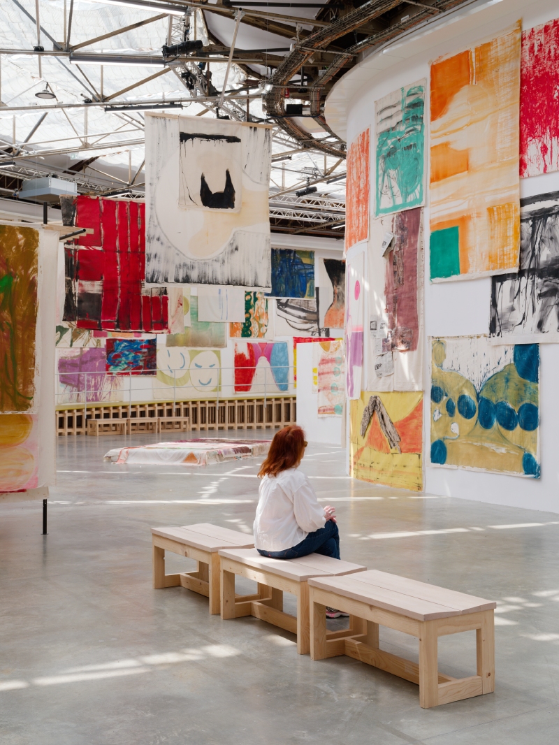 Vista de la exposición, Vivian Suter, «Disco», Palais de Tokyo (París), 12.06–07.09.2025 Copyright Vivian Suter Cortesía de Karma International, Zúrich; Gladstone, Nueva York / Bruselas / Seúl; Gaga, Ciudad de México; Proyectos Ultravioleta, Ciudad de Guatemala Crédito de la foto: Aurélien Mole