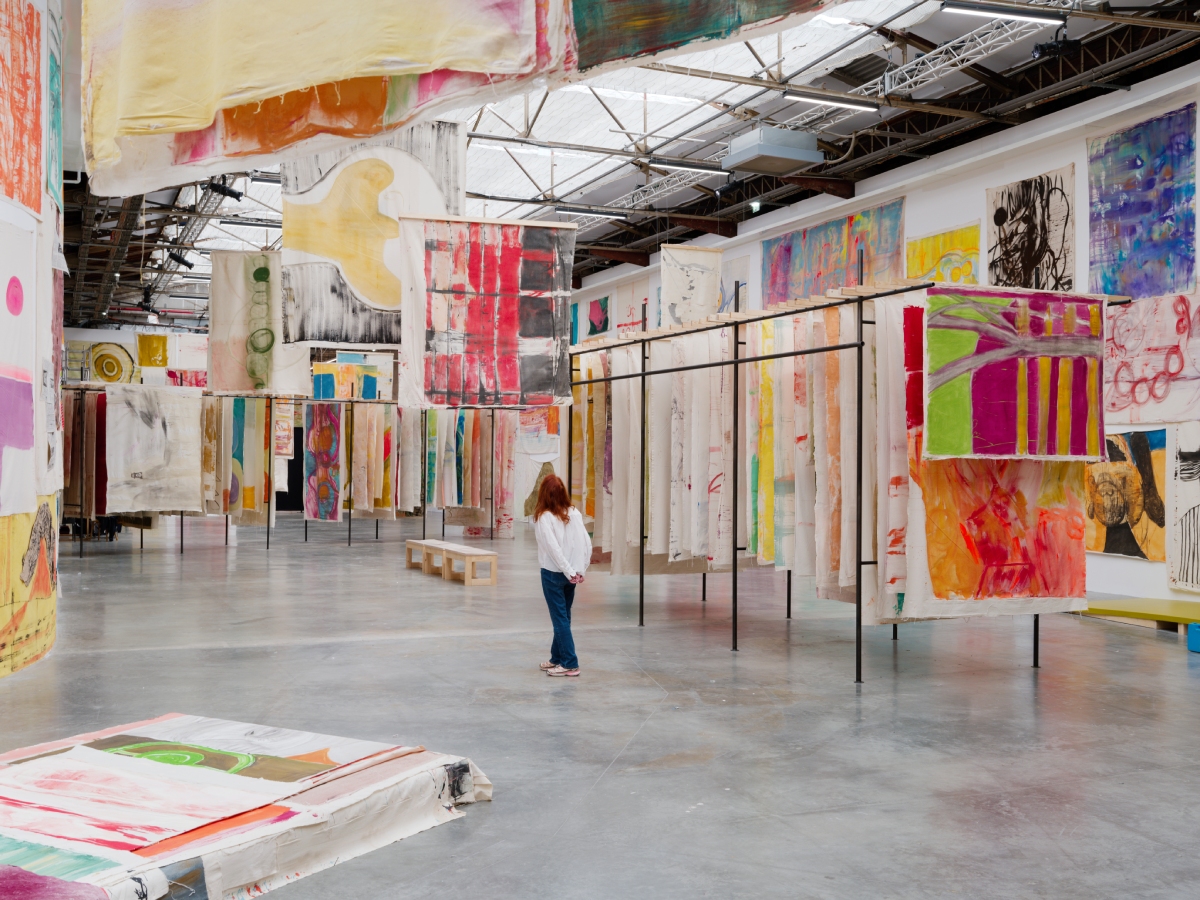 Vista de la exposición, Vivian Suter, «Disco», Palais de Tokyo (París), 12.06–07.09.2025 Copyright Vivian Suter Cortesía de Karma International, Zúrich; Gladstone, Nueva York / Bruselas / Seúl; Gaga, Ciudad de México; Proyectos Ultravioleta, Ciudad de Guatemala Crédito de la foto: Aurélien Mole
