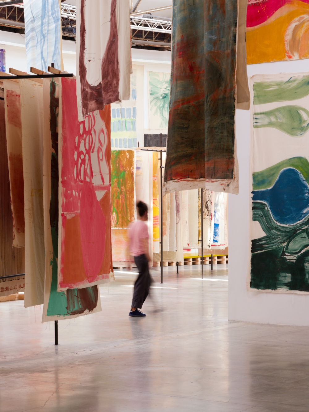 Vista de la exposición, Vivian Suter, «Disco», Palais de Tokyo (París), 12.06–07.09.2025 Copyright Vivian Suter Cortesía de Karma International, Zúrich; Gladstone, Nueva York / Bruselas / Seúl; Gaga, Ciudad de México; Proyectos Ultravioleta, Ciudad de Guatemala Crédito de la foto: Aurélien Mole