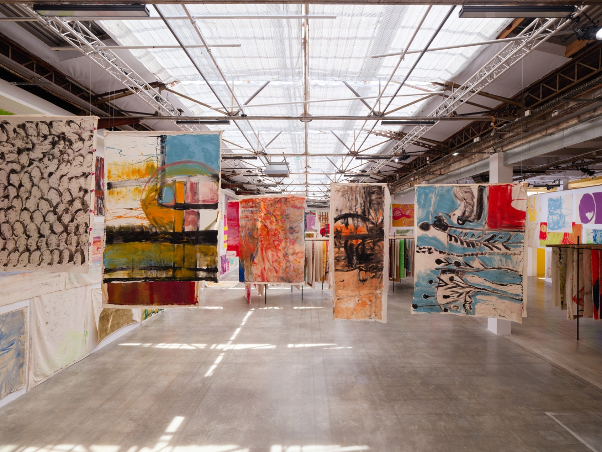 Vista de la exposición, Vivian Suter, «Disco», Palais de Tokyo (París), 12.06–07.09.2025 Copyright Vivian Suter Cortesía de Karma International, Zúrich; Gladstone, Nueva York / Bruselas / Seúl; Gaga, Ciudad de México; Proyectos Ultravioleta, Ciudad de Guatemala Crédito de la foto: Aurélien Mole