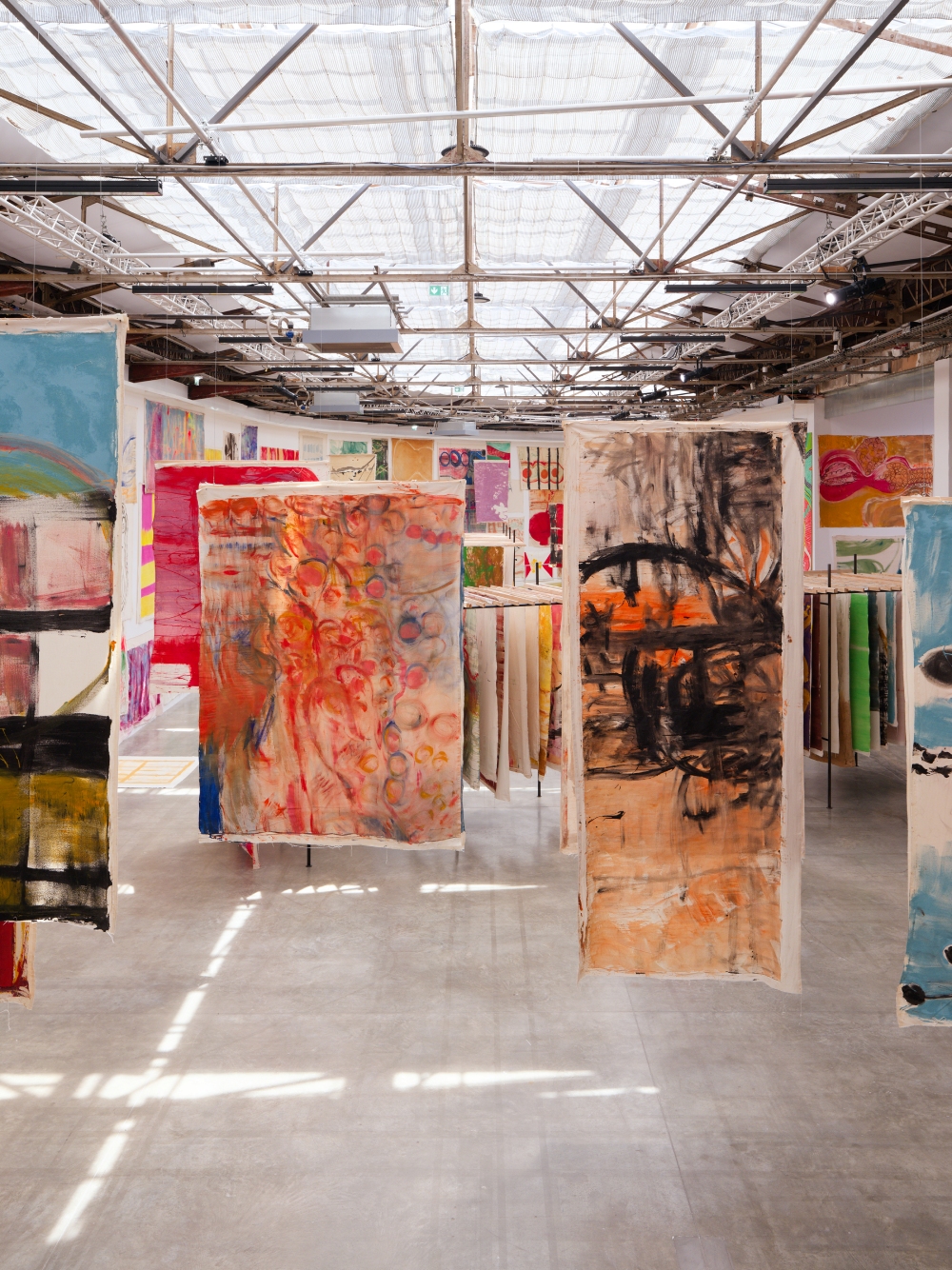 Vista de la exposición, Vivian Suter, «Disco», Palais de Tokyo (París), 12.06–07.09.2025 Copyright Vivian Suter Cortesía de Karma International, Zúrich; Gladstone, Nueva York / Bruselas / Seúl; Gaga, Ciudad de México; Proyectos Ultravioleta, Ciudad de Guatemala Crédito de la foto: Aurélien Mole
